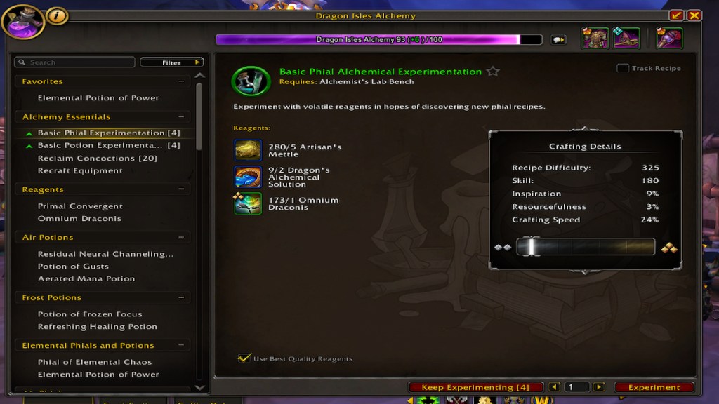 As of the most recent expansion, Dragonflight, professions got a significant overhaul and now have their own progression trees that can improve your yields and specific aspects of the profession. Additionally, your crafting now has quality levels, with higher quality being better items, secondary stats that affect your effectiveness, Finishing Reagants that can fine-tune your crafting, and crafting orders that allow you to levy your services to other players via an auction house-like system.